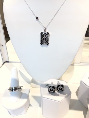 Men’s pieces are rarely included in Disney Jewelry collections, but there are cufflinks, a ring, and a necklace that coordinate nicely with the women’s pieces. The necklace is $800, the ring is $600, and the cufflinks are $500.