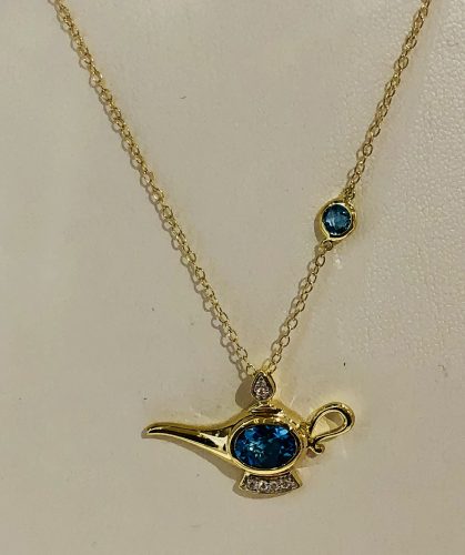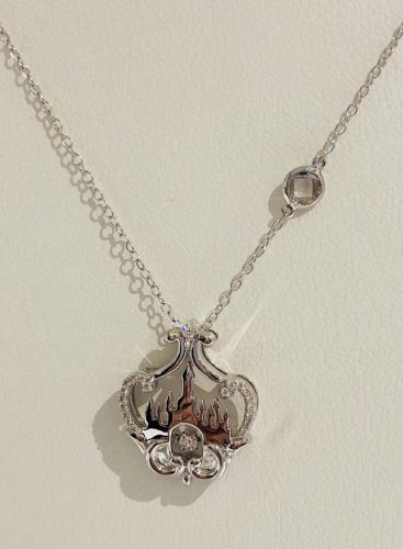 Aladdin is one of my favorite Disney movies, but in terms of merchandise, it often gets overlooked. It’s represented by two different necklaces in this collection though. The first is a gold chain with a Genie’s lamp pendant. It features a blue tourmaline gemstone and retails for $1000. The other necklace is silver and the pendant features a silhouette of the Agrabah palace. This one is $350.