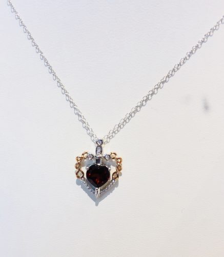 Snow White is heavily featured in the collection. The necklace, ring, and earrings are comprised of garnets and have an edgy feel thanks to the dagger on each one. The necklace is $500, the ring is $450, and the earrings are $300.