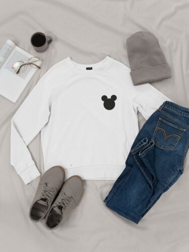 A white sweatshirt with a black Mickey Mouse head or a black sweatshirt with a white Mickey Mouse head – either way, you can’t go wrong. If you are more of a minimalist, this sweatshirt is perfect for you! You can pair this style with leggings, jeans, shorts, or a skirt. It’s simple enough to wear to the grocery store, but also Disney enough to wear to the Disney Parks.
