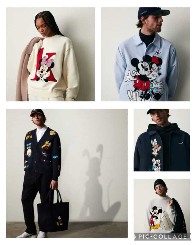 Over 42 Standout pieces from the collection include the Varsity Jacket, Sherpa Hoodie, and Crewneck Sweater. The Wool Varsity Jacket is created from wool blended fabric, with leather sleeves & a diamond-quilted satin lining. It features all-over custom leather applique Mickey Mouse artwork at the front and back. The Sherpa Hoodie made from premium heavyweight Sherpa fabric with a mesh-lined body. The design features the verbiage “Just Us” in embroidery, alongside Mickey Mouse & Minnie Mouse artwork on the front and back. The Crewneck Sweater features an array of beloved Disney characters with a chain-stitch execution on our signature chunky cotton knit.
