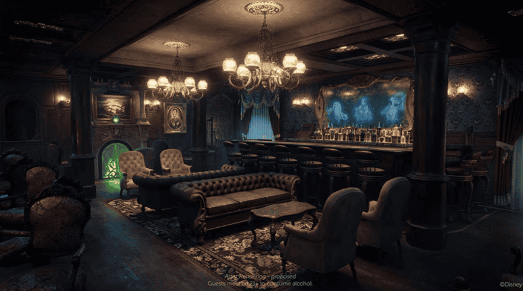 From the looks of the video released on Disney Parks Blog HERE, this will be in the same space where the Star Wars bar is on the Disney Wish. This means it will be a smaller bar but packed with awesomeness! There will be merchandise and special drinks…. not to mention hitchhiking ghosts!