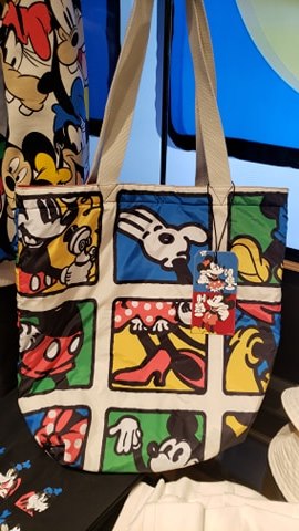 There are two reversible bags in this collection as well. The first bag (and my favorite item from the collection) features an all-over print of Mickey, Minnie, and Goofy on a white background. The other side of the bag is black and shows Goofy showing off several different poses.