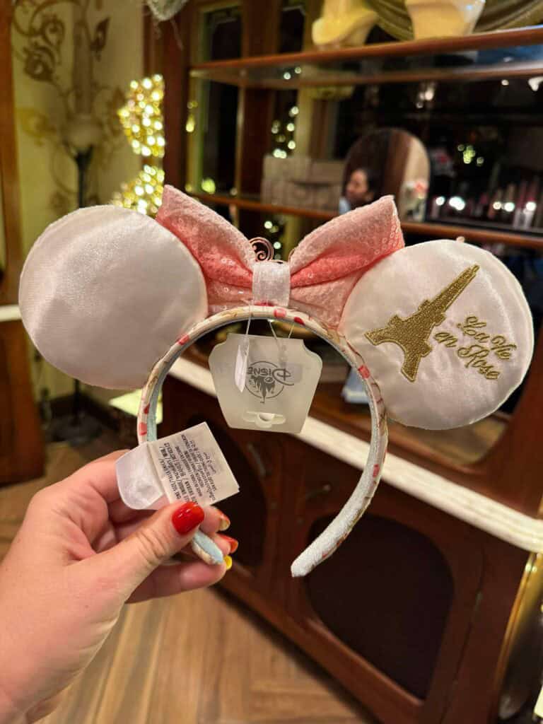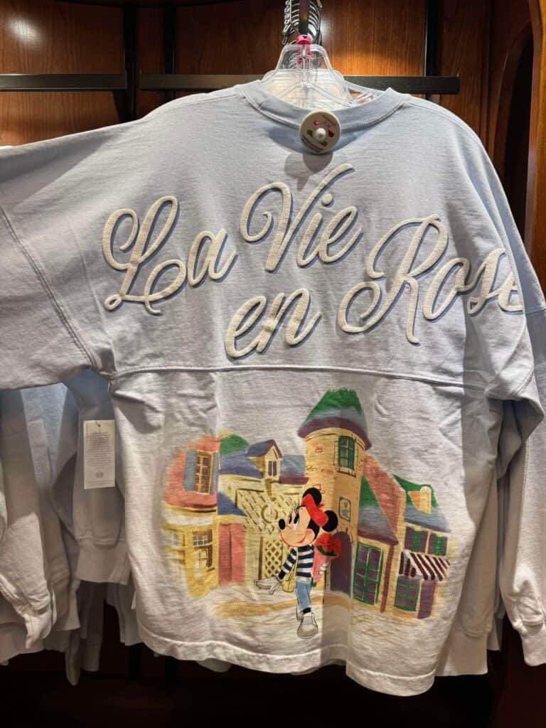 France invites you to La Vie En Rose with the new Spirit Jersey and ears. The phrase meaning Life in Pink is a French philosophy meaning to view life from a positive lens. I positively LOVE that! It’s the equivalent of looking at life through rose colored glasses. Both the Spirit Jersey and ears promote this lovely outlook along with a Parisian Minnie and landscaping.