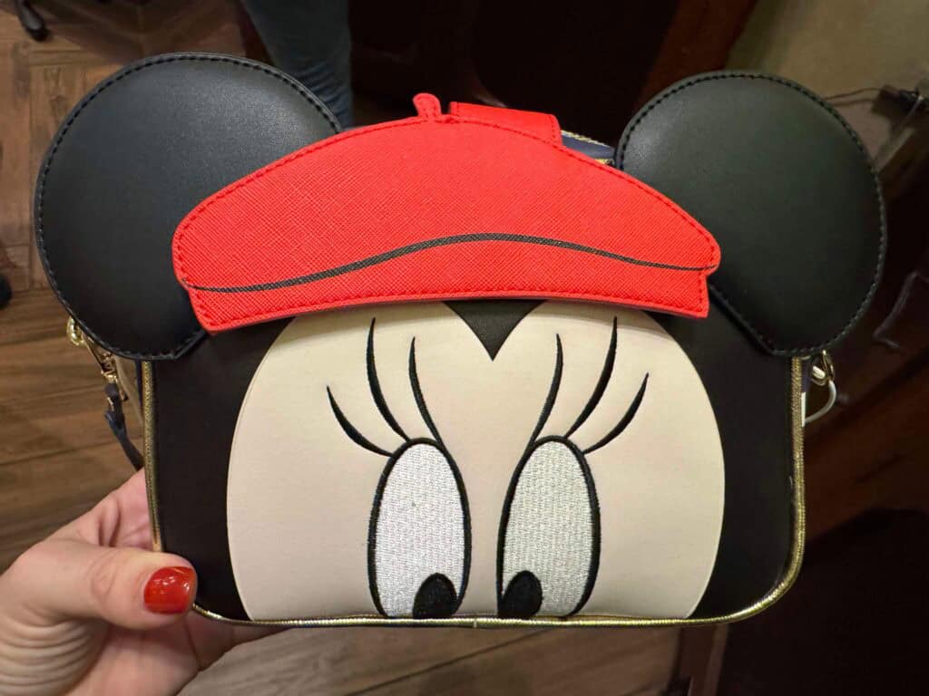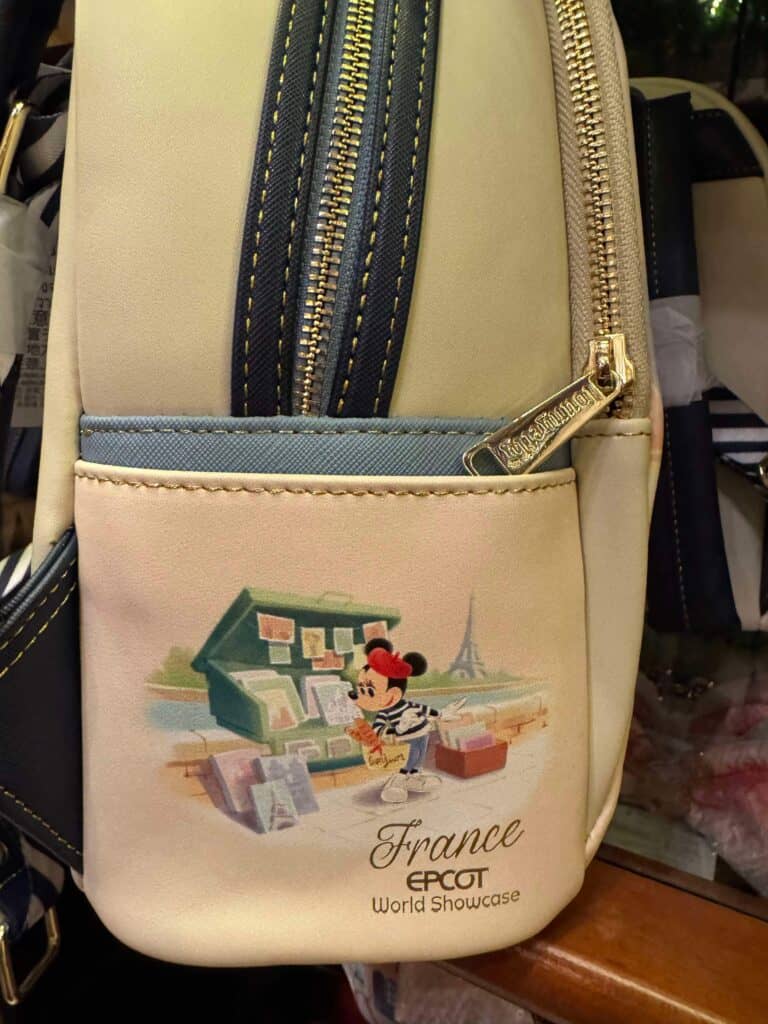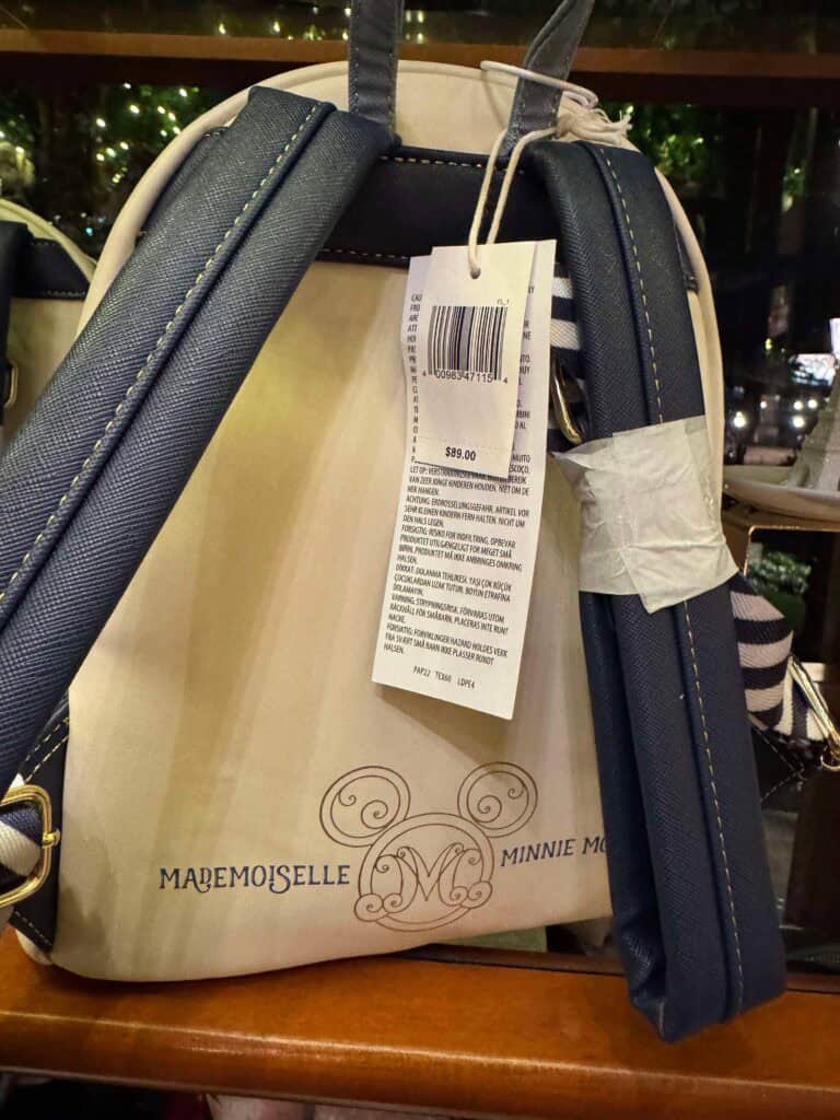 Mademoiselle Minnie gets some love with Loungefly accessories. You’re given the choice of a creme colored backpack and/or navy crossbody to match the plethora of apparel found below.