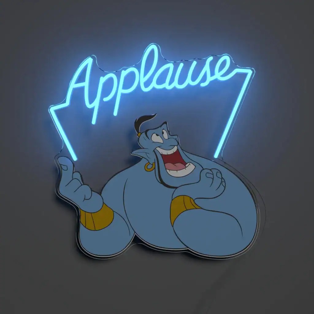 The fourth drop celebrates the 1980s-1990s and features the Genie, Flounder, a Toy Story Alien, Pizza Planet, and the Pixar Ball. The Genie sign with “applause” looks just like the part in the film!