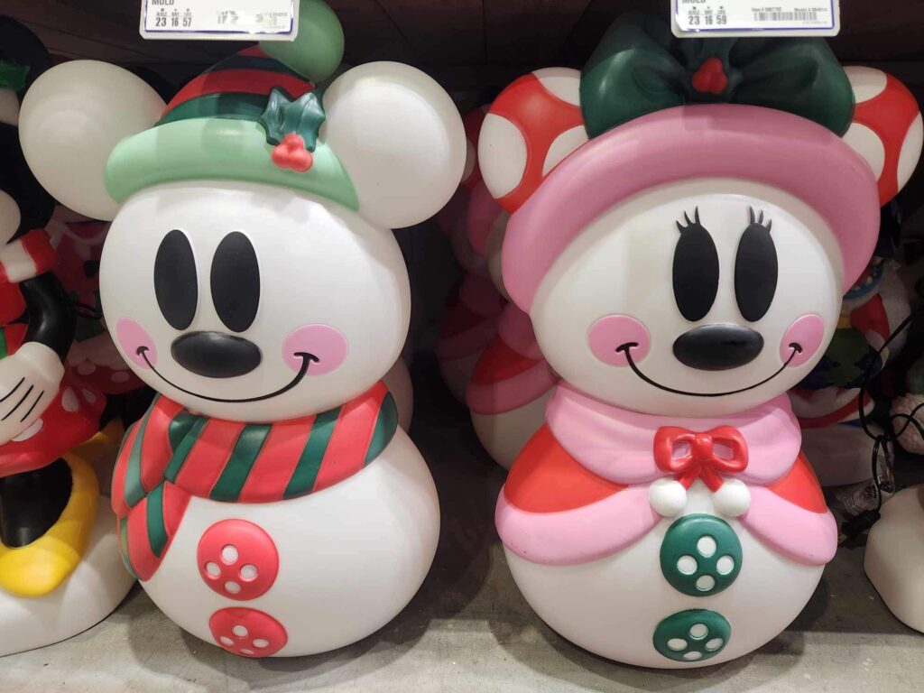 Illuminated plastic characters are a steadfast tradition. The plastic molded characters sure have come a long way since I was a young girl. These come in a variety of selections. Choose between Snow people Mickey and Minnie, Stitch, a peppermint pathway light, and festively dressed Mickey and Mickey.