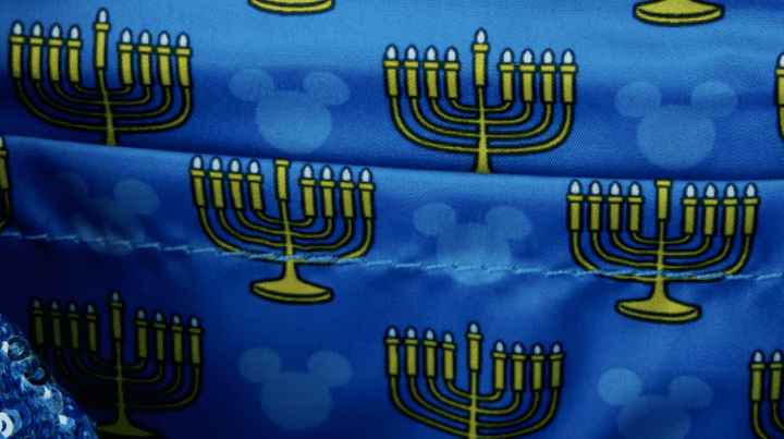 Finally, the interior lining gets into the holiday spirit as well. You see a mix of Mouse heads and Menorahs on a festive blue background.