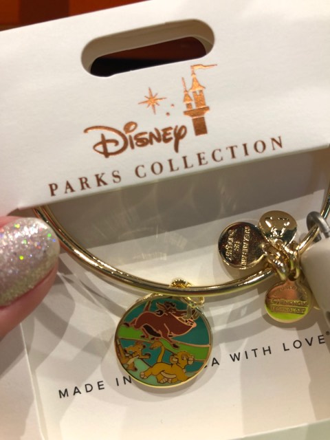 Make it a Hakuna Matata kind of day with this fun bangle featuring a double-sided disc charm. The front has Simba, Timon, and Pumba dancing along to the iconic song through the jungle, while the back says the popular quote “Hakuna Matata”, surrounded by golden leaves. This bracelet retails for $50.00.