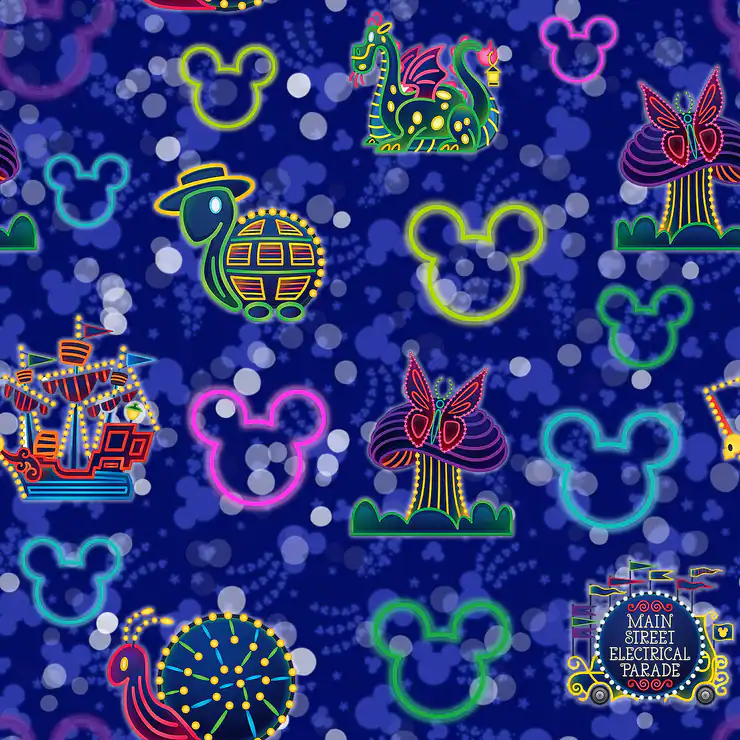 The Main Street Electrical Parade inspired print will light up your life! I can’t think of anything better to wear if you’re lucky enough to visit Disneyland to watch the parade!