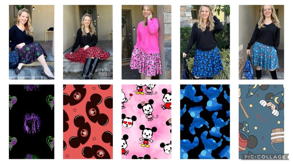 The Swing Skirt with pockets provide a great staple in your closet. As seen in the photos above, pair them with boots or dress shoes for a dressier look. In the Club pattern would look fantastic with the Harvey’s Mouseketeer collection. If that one doesn’t strike your fancy, no worries, there are 4 more options!