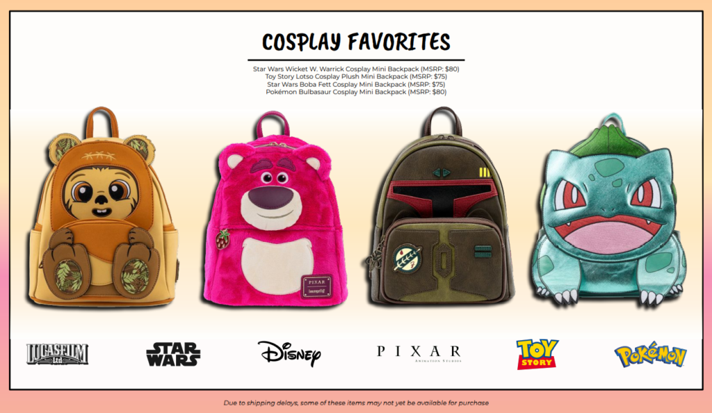 Everyone ones a good cosplay! You can rock Cosplay styles from multiple fandoms with these amazing backpacks. Get ready for adventure with the Star Wars Wicket W. Warrick Cosplay Mini Backpack. Share lots of hugs with the Toy Story Lotso Cosplay Mini Backpack. Save the galaxy with the Star Wars Boba Fett Cosplay Mini Backpack. No matter which one you choose, you will be ready for festival fun!