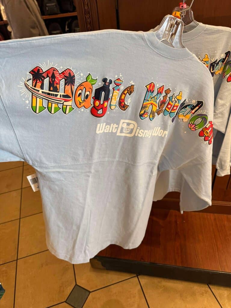 Un nuevo Spirit Jersey ha llegado a Magic Kingdom, en el vemos el nombre del parque en el reverso de una manera donde cada letra tiene un tema o personaje diferente. Vemos el monoriel, Orange Bird, Mickey Mouse, It´s a Small World, Big Thunder Mountain Railroad, Jungle Cruise, Piratas del Caribe, Dumbo, el Astro Orbiter, Tiana’s Bayou Adventure y más.