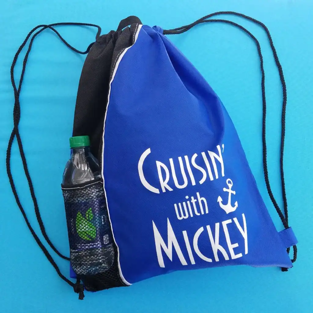This Disney Cruise inspired backpack is doing double duty! First, it is perfect for delivering Fish Extender gifts throughout the ship. Second, it can totally be used as a Fish Extender gift on its own! Each royal blue backpack measures 13-1/2″W x 17-1/2″H and has black & white accents and “Cruisin’ with Mickey” wording in white. You can get them for just $5.95 each.