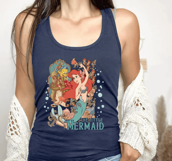 What I especially love is that it’s available in a variety of colors and sizes, so you can really make it your own. Whether you’re team purple tank for a nod to Ariel’s iconic seashells or prefer classic black for a more laid-back look, there’s a version of this tank to suit your personal style.