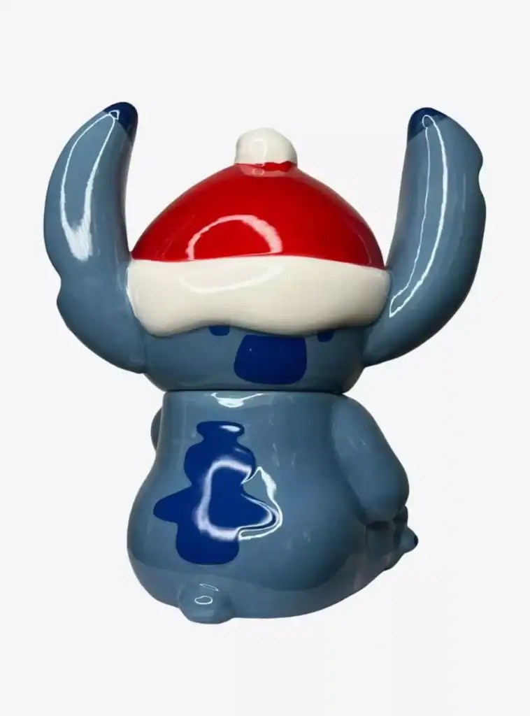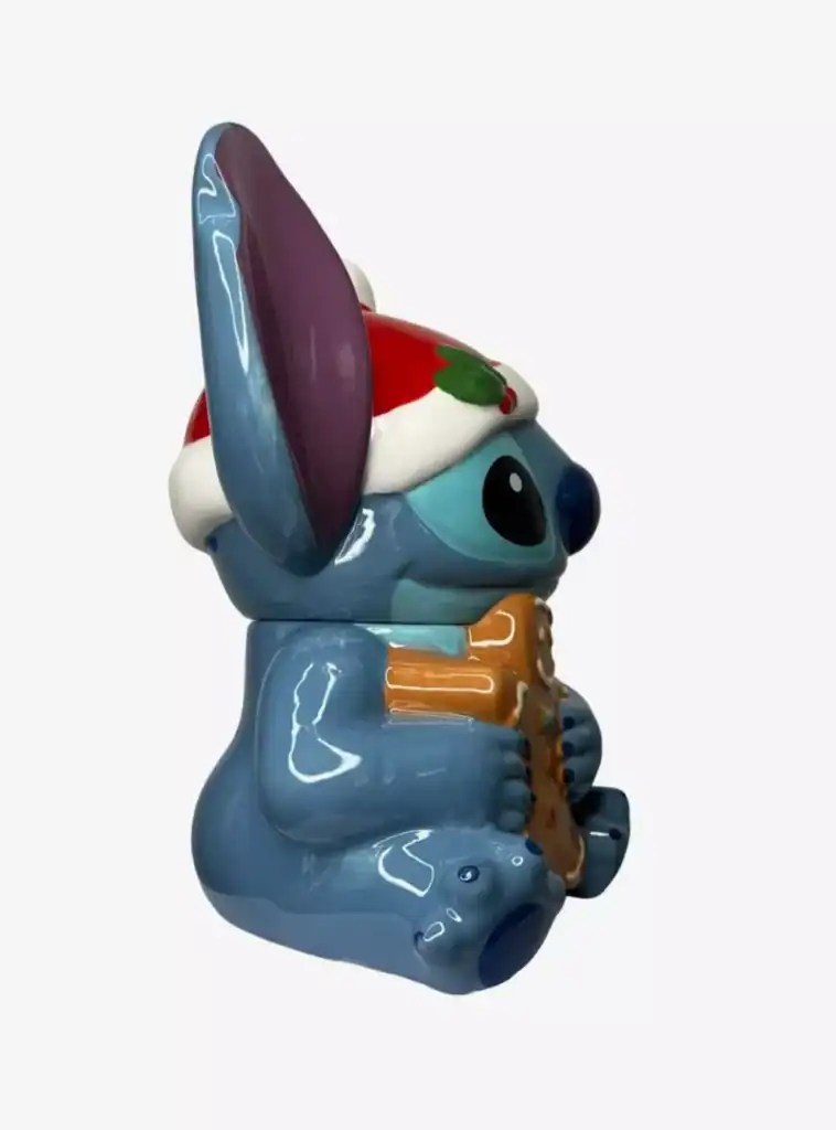 Now, how can anyone refuse this sweet face? All the shenanigans Stitch is known for get erased from memory when you look into the innocent eyes of this cookie jar. A Santa hat with holly leaf graces his head and Scrump has been replaced with a yummy (and surprisingly intact) gingerbread man.