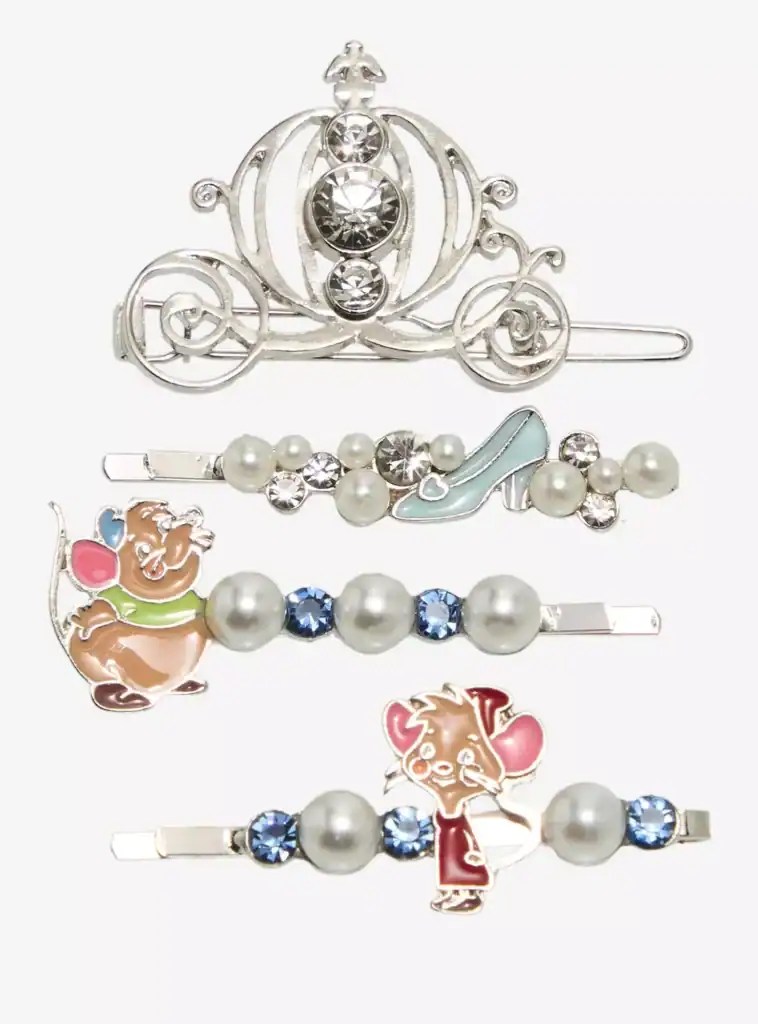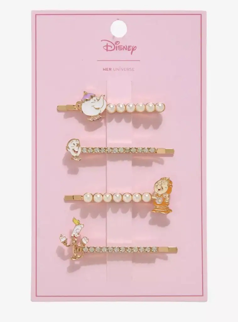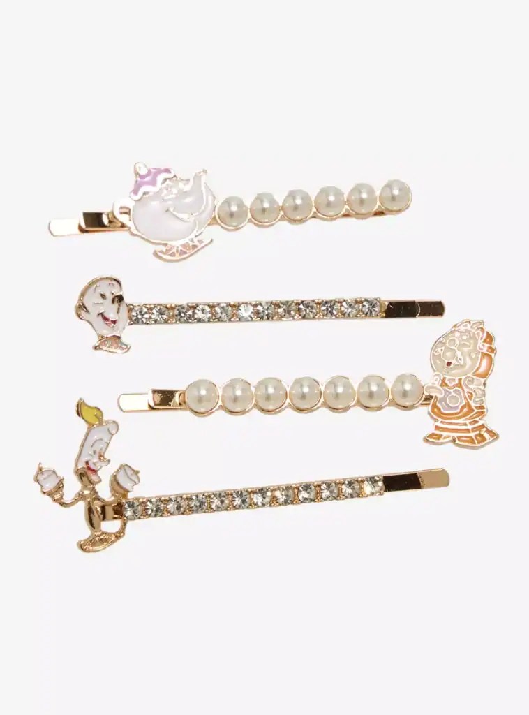 Pin back your hair in storybook style with adorable clips inspired by Disney’s Cinderella and Beauty and the Beast. From Cinderella’s royal carriage barrette to bobby pins adorned with her iconic glass slipper, each piece adds a fairytale touch. Also included are Ella’s loyal sidekicks Gus Gus and Jaq. Slip them in and enjoy your own happily-ever-after moment. Gold tones inspired by the grandeur of the Baroque era define this set of four Beauty and the Beast hair pins. Each features beloved enchanted servants accented with cut-glass details and pearl-like beads, creating a look that’s timelessly elegant. Slip them in for a hairstyle that’s nothing short of enchanting.