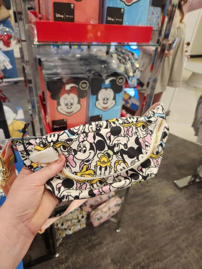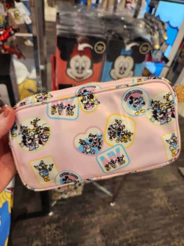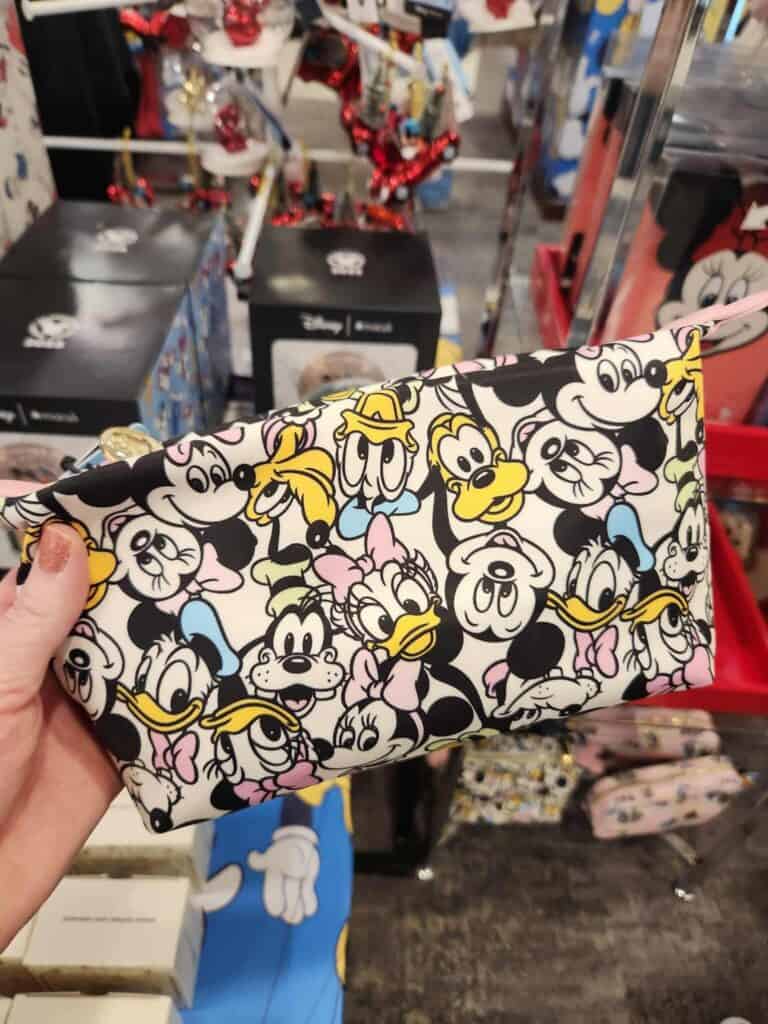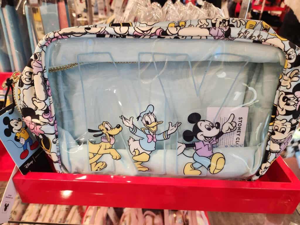 Thanksgiving means spending time with family and friends, which often calls for travel. Toiletry bags can easily get messy with spilled liquids or makeup residue. Refresh your bags with fun, festive bags from the Macy’s Mickey and Friends collection. These three travel bags are just what you need to get your ducks in a row. No, Donald, we’re not talking about you! The Top-Zip Clear Front Large Pouch boasts a nostalgic 1950s graphic with a light outline of “NY”. It’s perfect for airport security AND organization with the see-through front. Next up are two very different small, zippered pouches. With one pouch, the fabric portrays multiple patches of the close friends against a pink backdrop. The second offers an all-over black and white design of the friends with small pops of color.