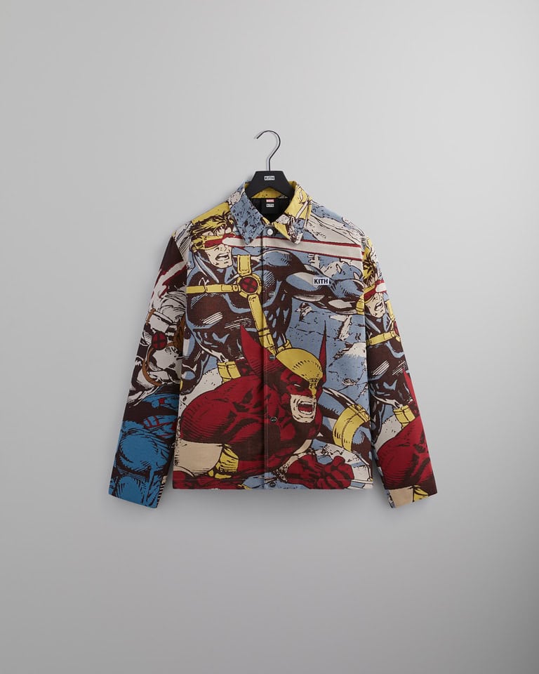 Kith reinterpreted archival X-Men illustrations, graphics, and logos to create elevated apparel styles, as well as accessories and collectibles. The apparel range features tapestry coaches jackets, wool varsity jackets, satin bombers, as well as intarsia knitwear and vintage tees. Accessories’ styles include headwear, skate decks, keychains, and pin sets.