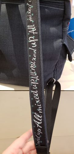 The backpack even has detailing on the straps. I’m guessing in this particular film Mary is feeling all mixed up, based on the wording on the straps. I, personally, like the less patterned background with the Mary images scattered on it. I like the less busy look.
