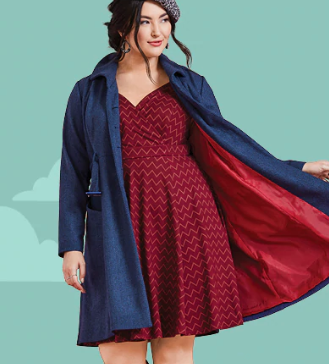 The Red Zigzag dress and Blue Cape Coat pair perfectly together for a real life Mary Poppins costume. With these two exquisite pieces combined all you’ll need is a few accessories like a hat, umbrella, and carpet bag maybe? The coat will be sure to keep you warm through the entire Jolly Holiday season.