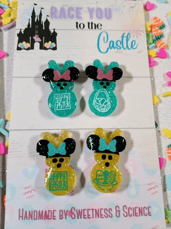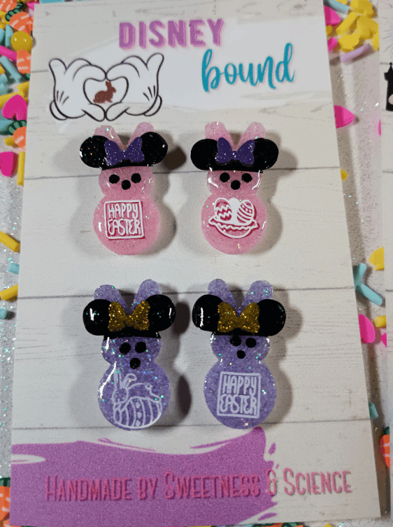 SweetnessandScience en la plataforma Etsy nos tiene unos adorables aretes para dejarnos listas estos días de Pascua. En sets que tienen temas de los Peeps (dulces tipo bombón tradicionales de la temporada de Pascua) pero con un twist Disney al tener orejas y moño de Minnie Mouse. Incuso en esta ocasión puedes elegir tu tarjeta de presentación de los aretes por si los quieres regalar.