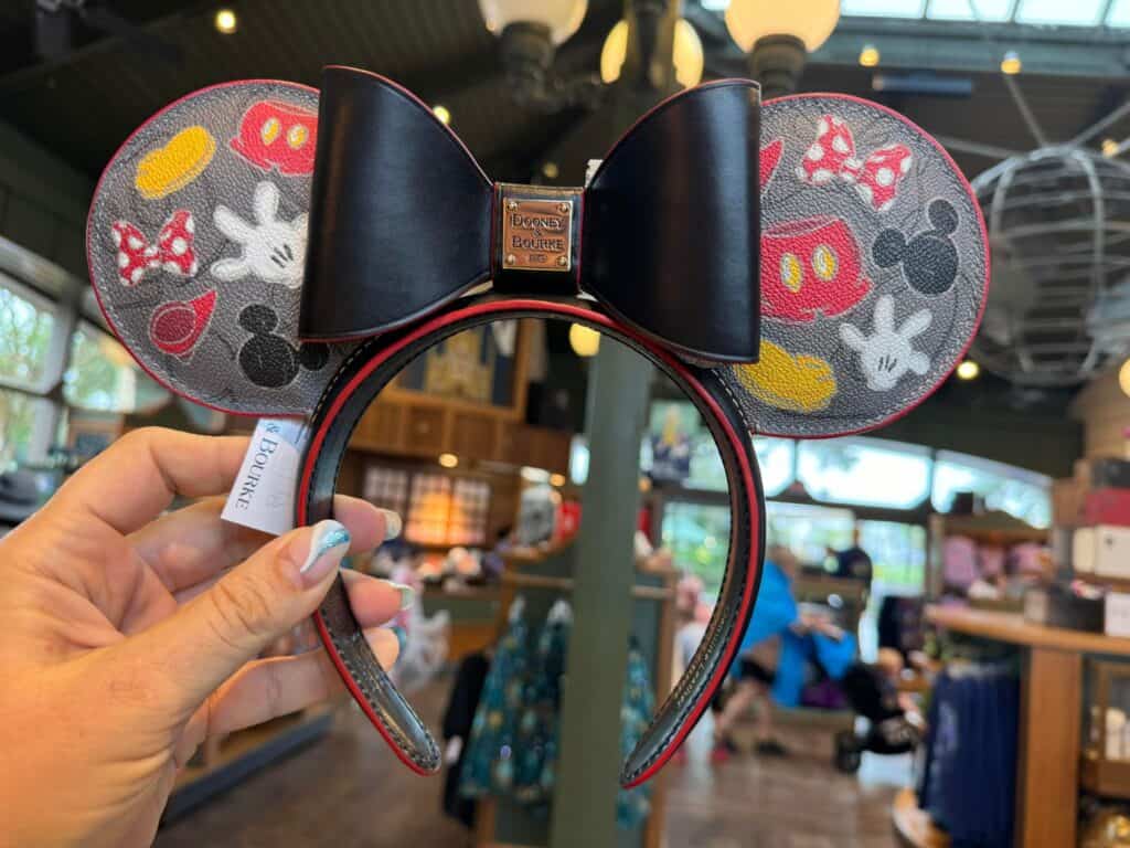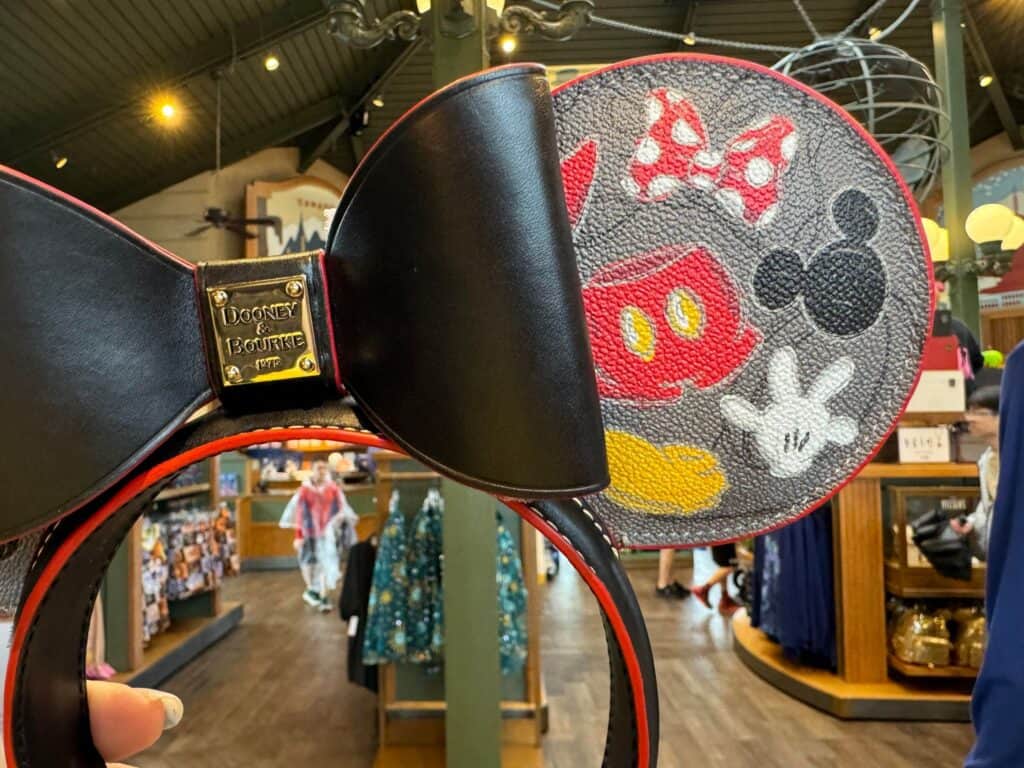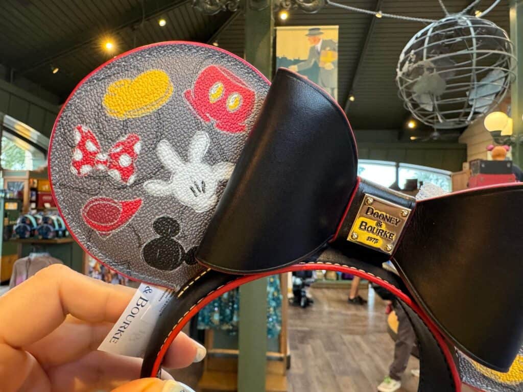 En una reedición más de estampados del pasado, la marca Dooney & Bourke nos trae de nueva cuenta el estampado de partes del cuerpo de Mickey y Minnie. En esta ocasión lo vemos en un bolso tipo crossbody moderno y unas orejas para parque con el moño central y placa metálica de la marca. Este estampado tiene las partes más reconocibles de ambos ratones, sus zapato, tacón, guantes, moños, bermudas y silueta simplificada en un fondo gris y con detalles rojos en sus orillas. Disponible actualmente en Tren-D en Disney Springs y en Port of Entry en EPCOT.