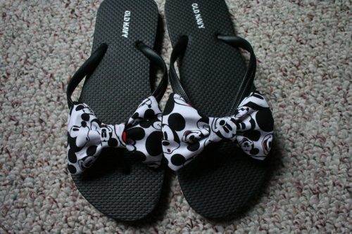 Flips flops are a summertime staple for every fashionista’s wardrobe. These black and white Mickey Mouse bows are the perfect flip flop topper to take your style to the next level this summer. You can pair these sweet little flip flops with shorts, skirts, dresses, or jeans for a casual, Disney inspired vibe.