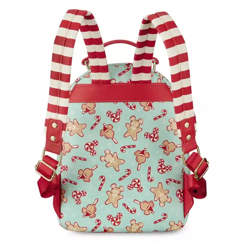 Get into the Christmas spirit with this festive mini backpack by Loungefly. This cute carryall features an allover print of holiday treats, striped shoulder straps, and a sequin Mickey Mouse front pocket with 3D ears for extra sweet holiday style.