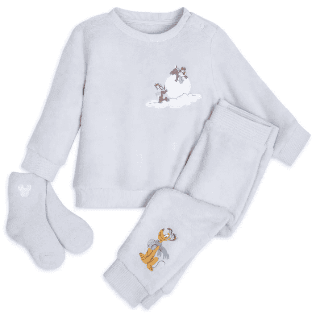 I mentioned that there are clothes for those mini fashionistas and here they are! My niece is about to have a baby and I can’t think of a better outfit to bring him home in than that Mickey with the Snowman gift set (he’s due in December).