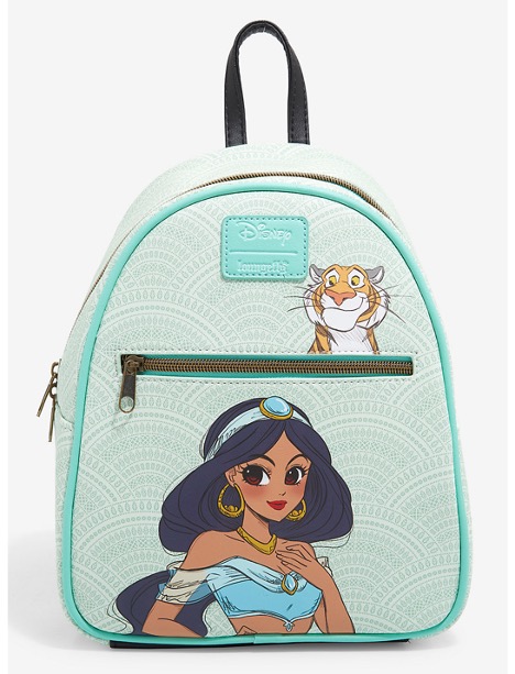 Another harder to find princess, Jasmine, appears on the third backpack in the collection. The teal colors and circular patterns of the backpack are reminiscent of the far away land that Jasmine comes from. Rajah sits at the top portion of the backpack almost looking out for Jasmine from afar. His all-knowing look really captured my attention and made me love him even more.