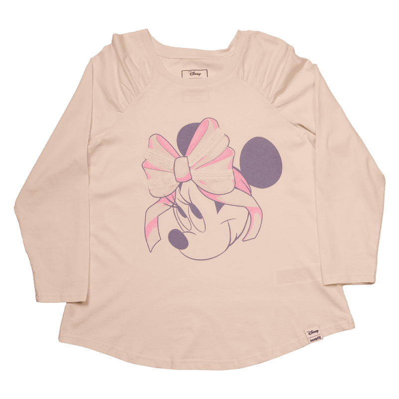 The ultimate fashionista, Disney’s Minnie Mouse, looks absolutely charming on the front of this raglan style, shirred tee. Her face comes to life in screen-printed detail, and her bow features real lace details. Pull on this versatile and comfy tee, take off on an adventure, and top the fun off with a bow.