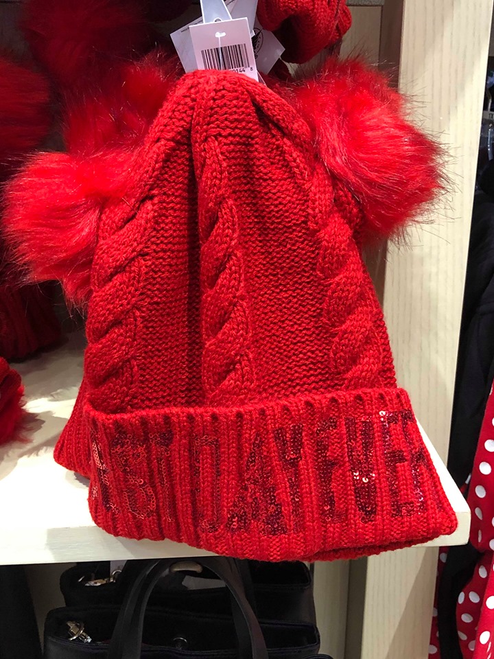 The beanie has a cable knit pattern, and also, SEQUINS! Sparkly micro sequins spell out “Best Day Ever” across the front. Afterall, any day at Disney is the best day ever. The hat is topped off with a fluffy pom pom on each side to mimic the iconic Mouse ear style. This beanie also retails for $25.00. Which is a nice alternative if you aren’t able to get a Love Your Melon Disney Beanie.
