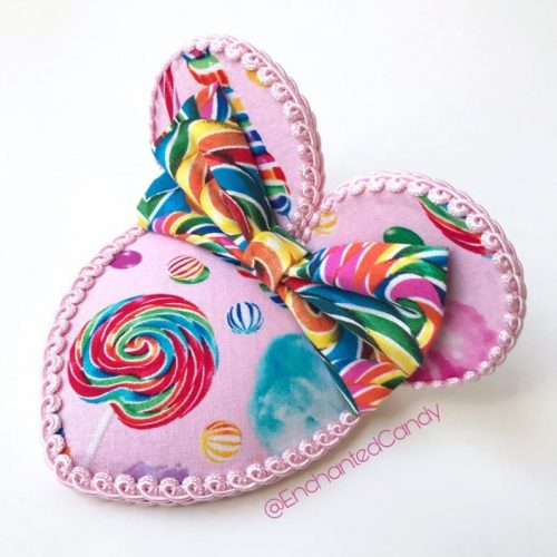 The perfect ears for any Candy Queen! These ears feature a sugary-sweet print fabric with matching baby pink trim and finished with a lollipop bow! You can get it HERE for $36.00.