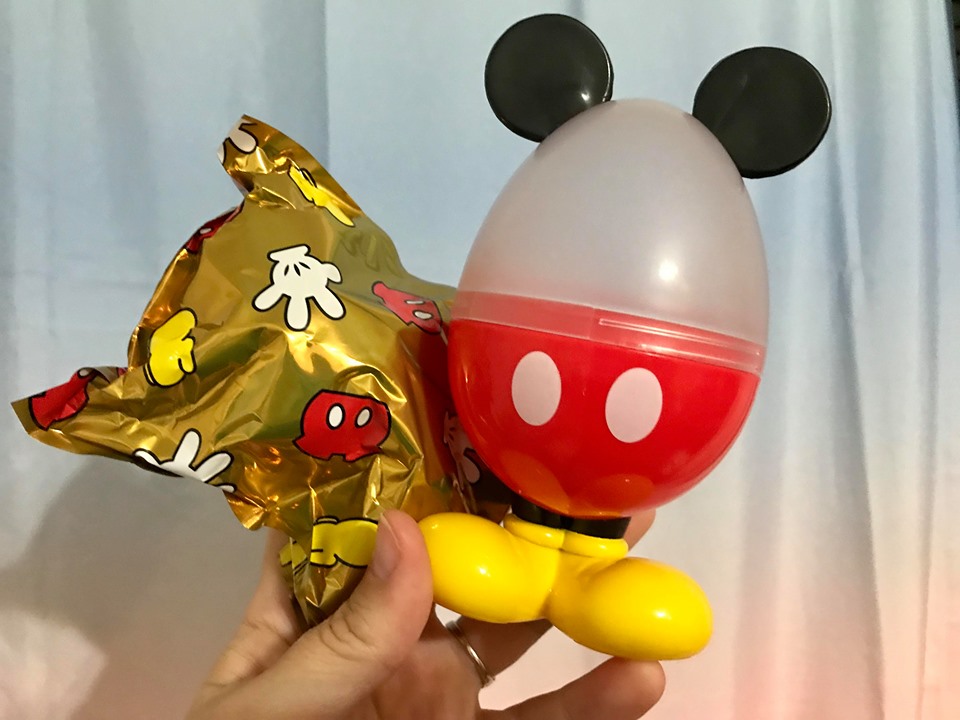 The egg is a very cute design that features Mickey’s ears, shorts, and shoes! Hidden within each one is a gold foil wrapper that hides the mystery character!