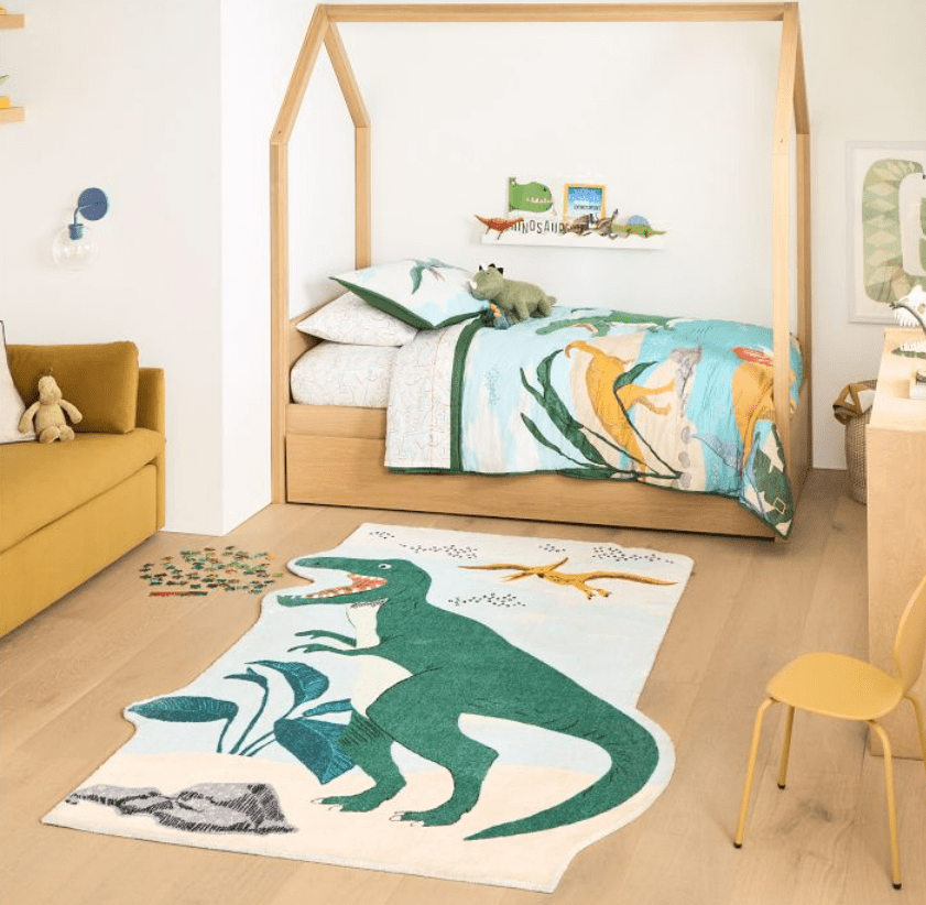 This collection kind of feels like it was created with my son in mind. We just moved into a new home and he requested that his big-boy room be themed around dinosaurs. While I have been busy piecing together items from different stores, West Elm Kids has everything anyone could want to create a dinosaur themed room with style!