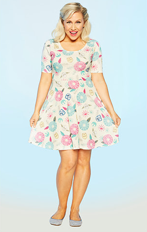 The Star Wars pastel swing dress is my favorite of the new Star Wars pieces. This white and pastel printed dress has adorable stylized icons or Yoda, R2-D2 and C-3PO. The lovable Yoda and Droid icons are sprinkled among a floral design, with beautiful colors that are perfect for Spring.