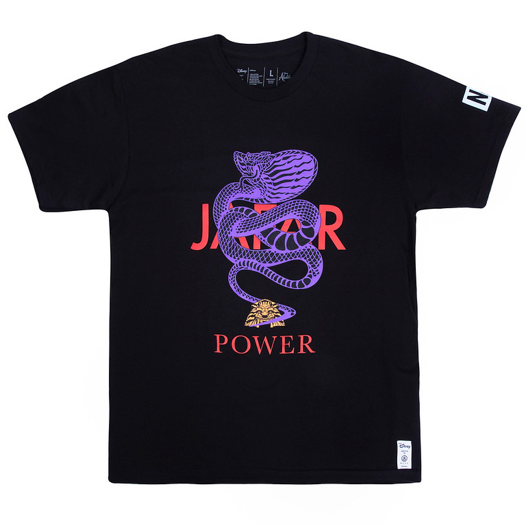 There is an assortment of tees for men featuring Genie and Jafar. The first tee is a front and back t-shirt featuring the magic lamp, with bright neon colors. The style continues into the Genie Magic tee and Jafar Power tee. The men’s tees are available from $18-$28.00.