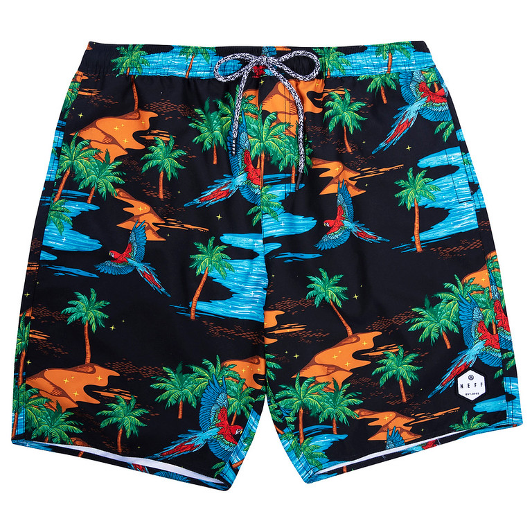 Guys can splash into the oasis with the Agrabah Oasis print. Available as a pool slider button down shirt, or swim shorts, you’re sure to be summer ready with these fun apparel selections featuring Iago.