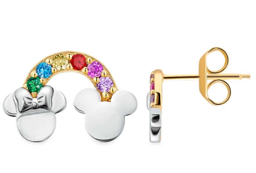 A gold and multicolored crystal rainbow links the famous couple together on the Mickey and Minnie Mouse Rainbow Earrings. I loved the older version of the Crislu Rainbow Mickey jewelry and this is such a fun update!