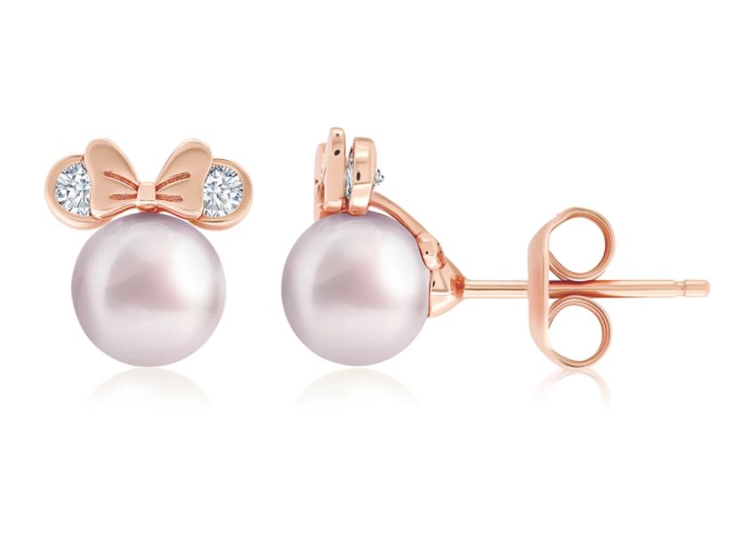 Pearl earrings are a wardrobe must-have! The Minnie Mouse Icon Pearl Earrings in rose gold and pink pearl are a cute twist on the must-have.