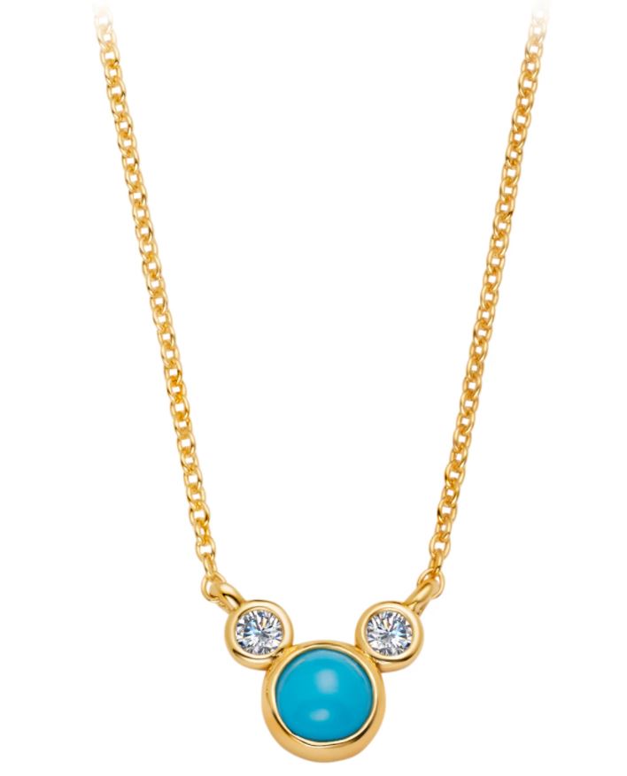 If you love subtle Disney style, the Mickey Mouse Icon Turquoise Pendant Necklace is a perfect choice! Mickey Mouse’s icon is enhanced with a turquoise stone and crystal ears contrasted with a yellow gold finish.