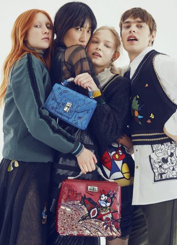 In this new collection, Chen drew inspiration from traditional Chinese watercolor paintings and adding the vibrant characters of Disney. Mickey Mouse and Minnie Mouse star on the new handbags that are perfect for any Disney Fashionista.