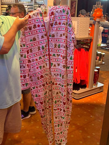 You can find these fun jam jams at select locations throughout the Disney Parks. We found them at Mouse Gear, and they retail for $69.99. These open with a zipper on the front, and even have pockets! I truly do appreciate when my PJs have pockets, it’s a great place to keep my phone while doing things about the house. Let’s be honest we’re totally going to wear these all over the house, and possibly outside the house too.