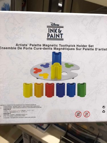 Lastly is the magnetic toothpick holder. This a metallic artist palette, that Mickey-shaped cups magnetize to. I’m sure you could put other stuff besides toothpicks in them as well.