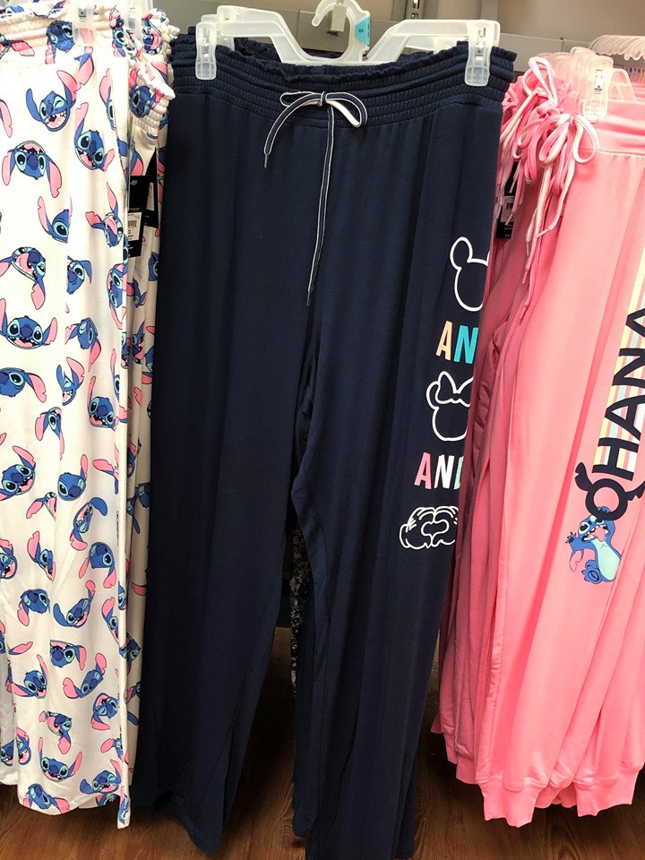 I am always a fan of PJ pants, and love to wear them with different tops. There are Stitch flare out PJs, Ohana joggers, and then a pair of beachy Mickey and Minnie joggers.