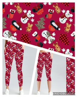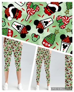 The next set of leggings are tastefully made for the holidays. They are scrumptiously titled “Holiday Treats.” Red and White Peppermint lollipops, candied apples dressed as Santa, cups of Ice Cream treats, and of course a hot beverage towering with whipped cream are sure to entice the sweet tooth. I don’t know about you, but they’re making me hungry!