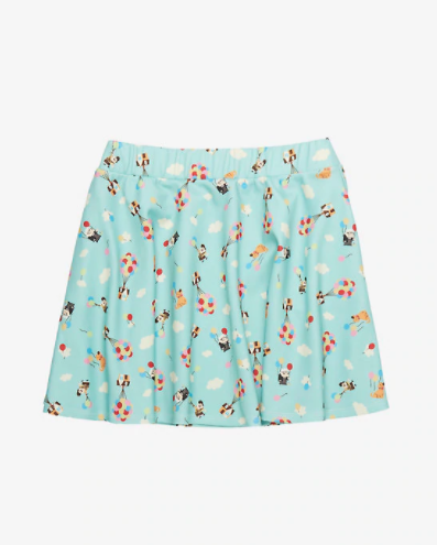 Dress up for your photo op at Paradise Falls. This skater skirt features an elasticated waistband and an allover print of clouds, Carl and his house, Russell, Dug, and of course lots of balloons.