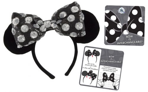 Okay, now let’s talk about this collection. This is the starter headband and bow (above). This one is inspired by Minnie Mouse but there are 6 other bows we already know can be swapped out. If you are like me, you like to wear different ears each day you are at the Parks. This interchangeable bow collection would make packing so much easier! One headband and a multitude of bows takes a lot less room than a week’s worth of headbands!