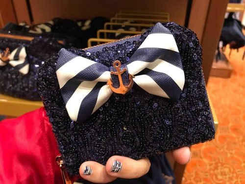 The coordinating wallet is a half-sized wallet, that has the same beautiful sequins, ears, and bow! Inside you’ll find the fabulous Disney Cruise Line print and several slots for your I.D. and cards!